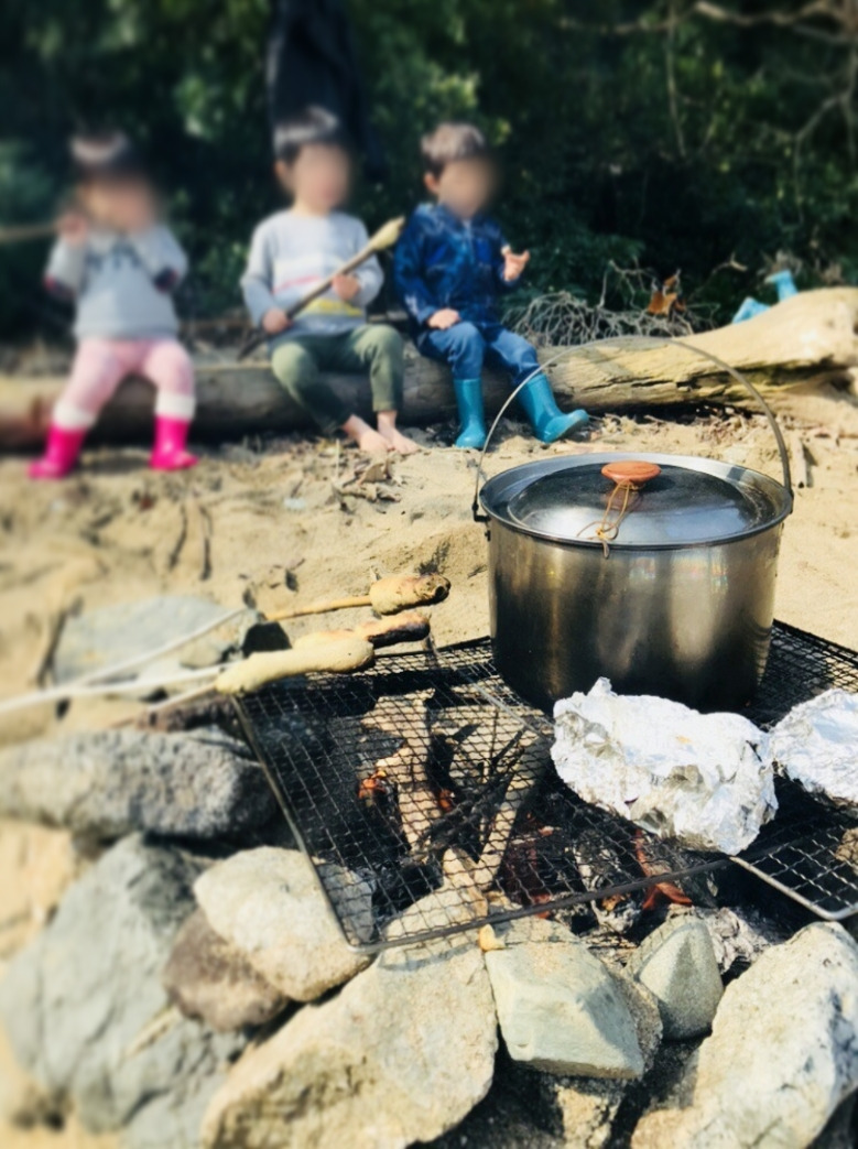 かまど作って、ご飯作ってたらほんとにあっという間。