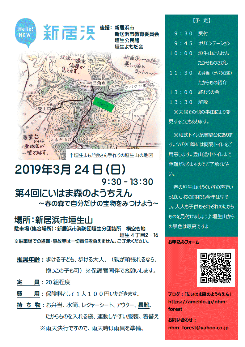 2019年3月24日にいはま森のようちえん~春の森で自分だけの宝物をみつけよう~