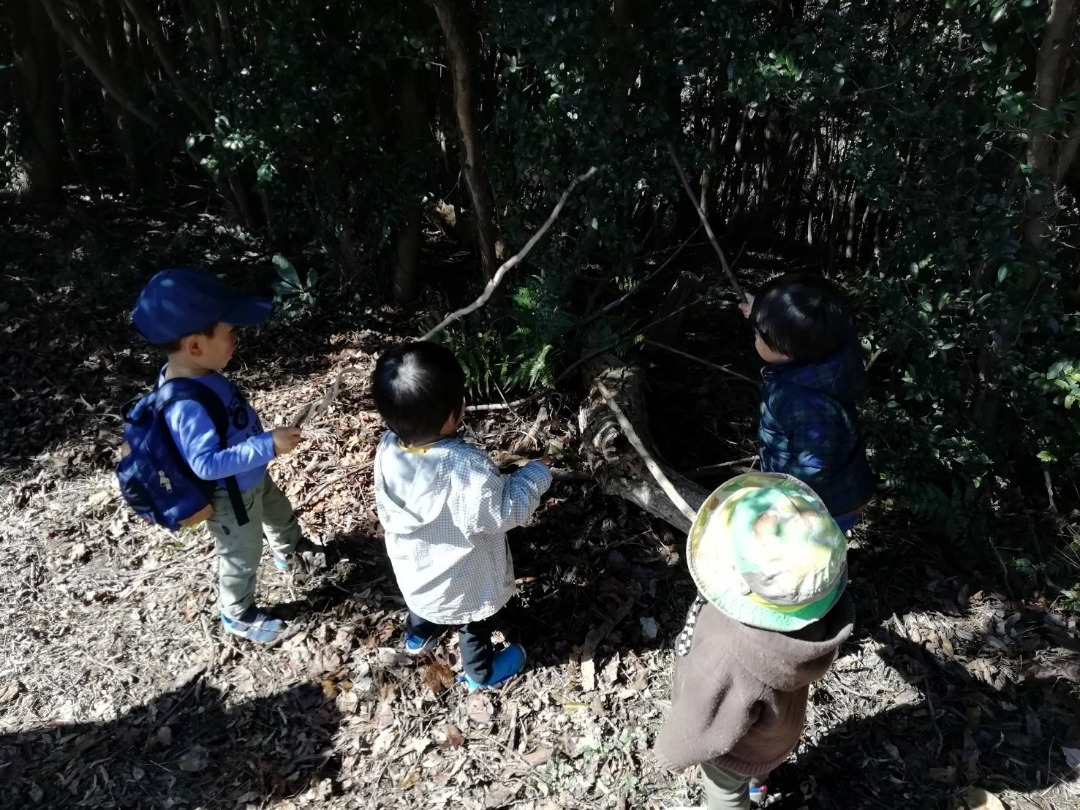 木の棒や葉っぱを持って歩くのではらはらしましたが、これもいい経験だなと![]()