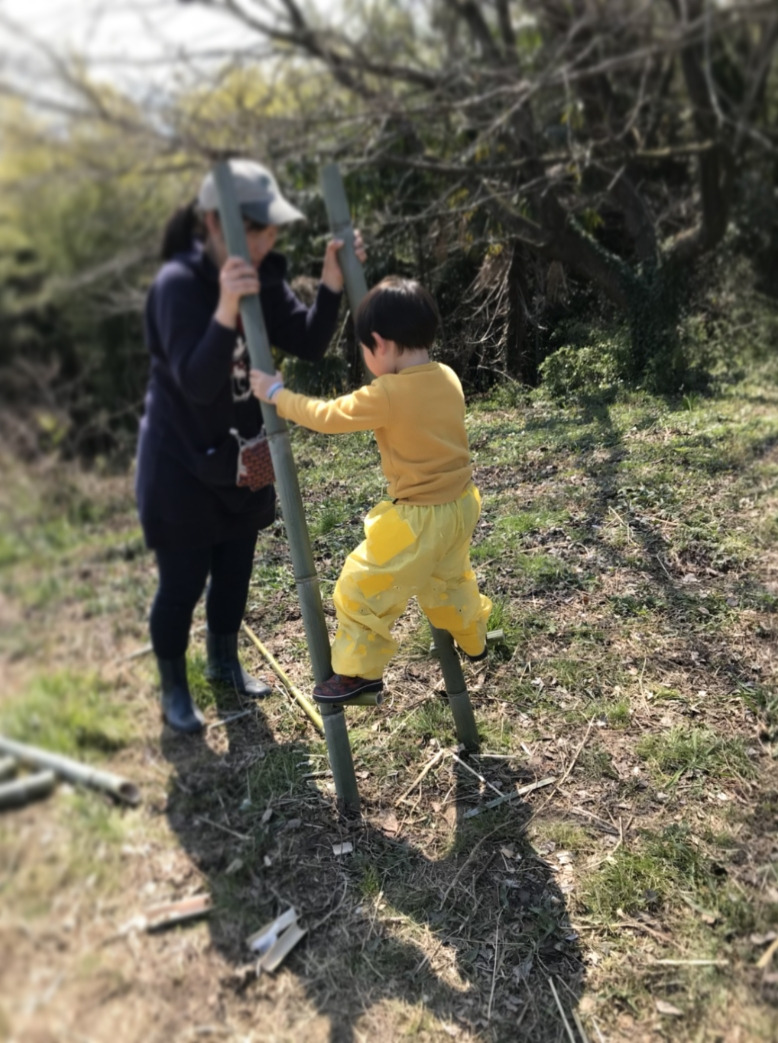 ステップをあがる姿をゆっくり眺められるにいはま森のようちえん。