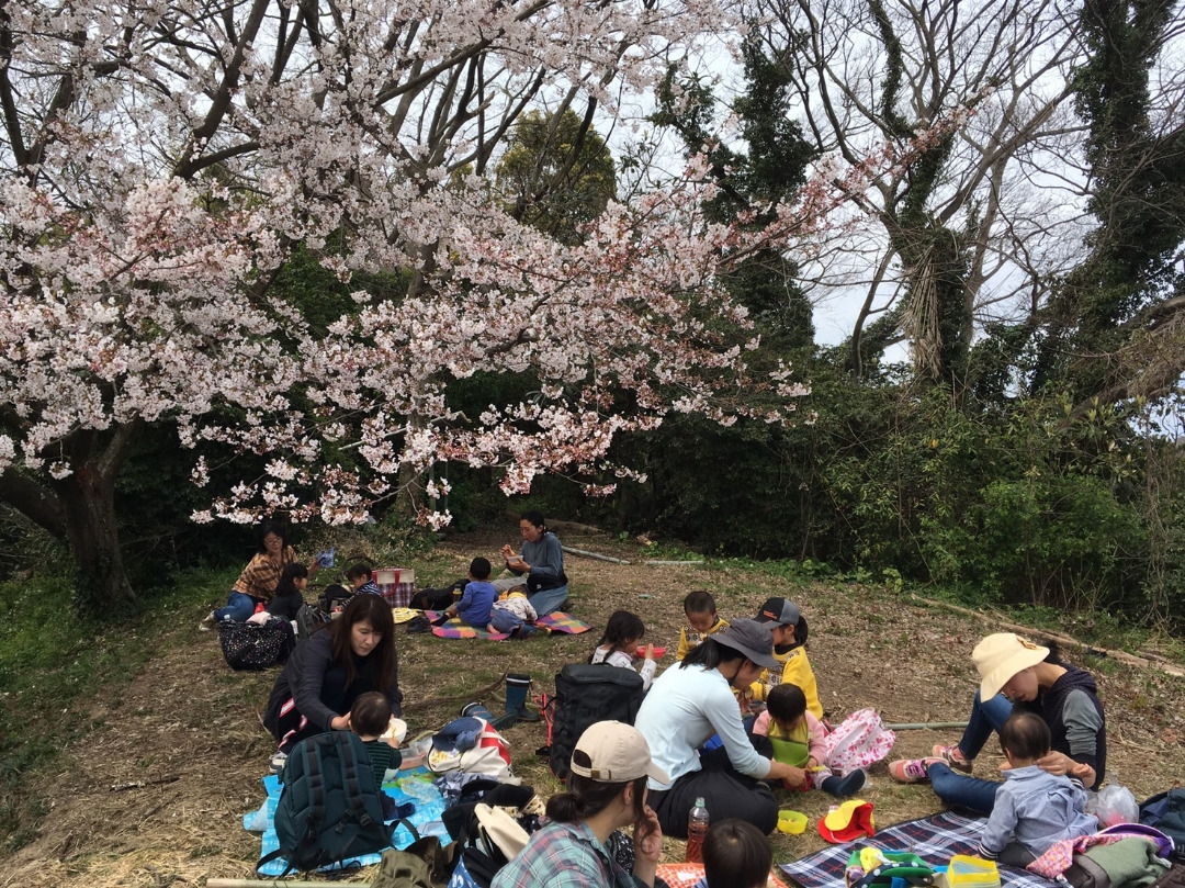 桜の下でお昼ご飯。
