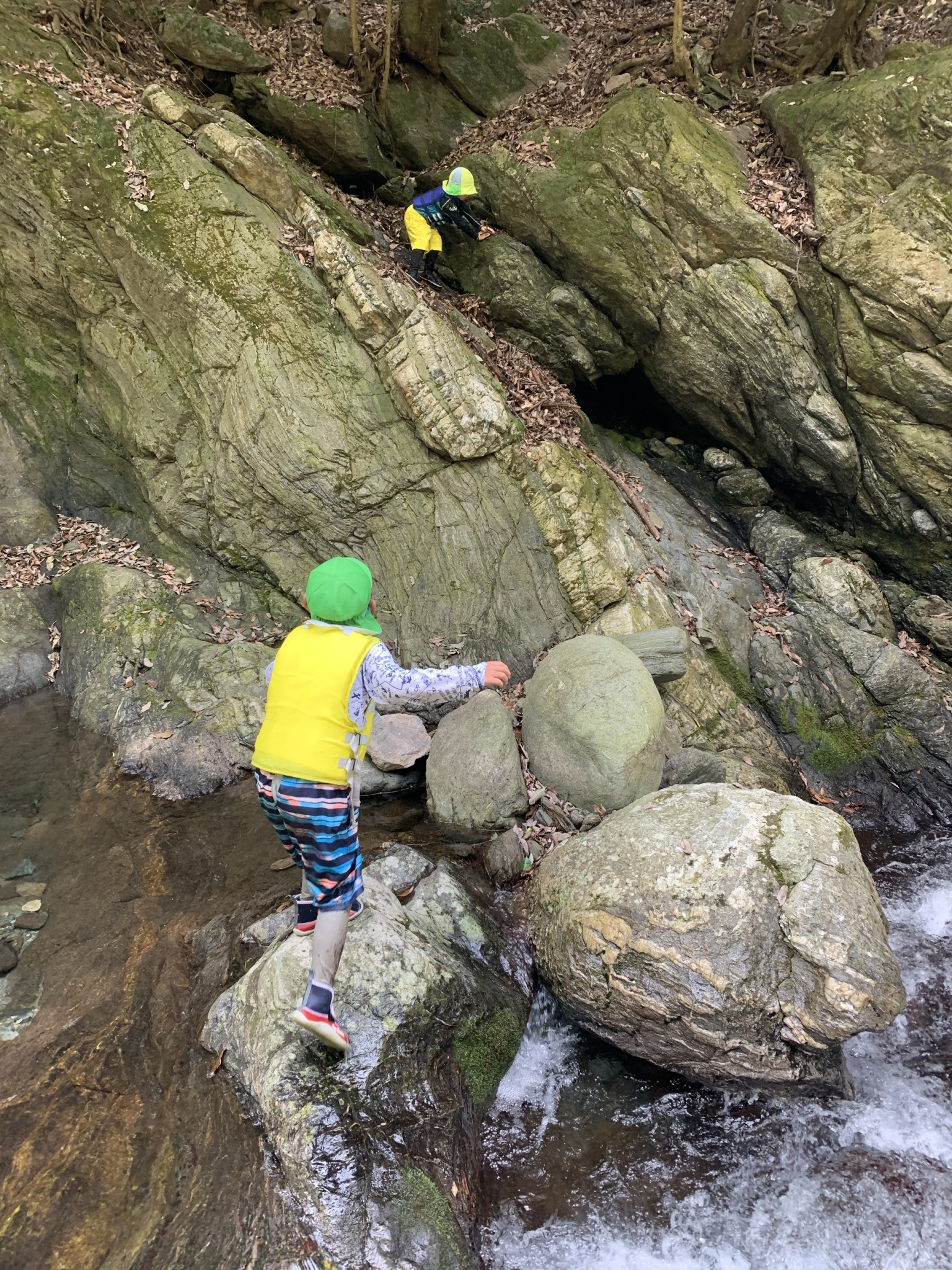 岩から飛び込んでいた子は奥の岩場をよじ登り更に新しい遊び場を開拓します。好奇心旺盛ですね。