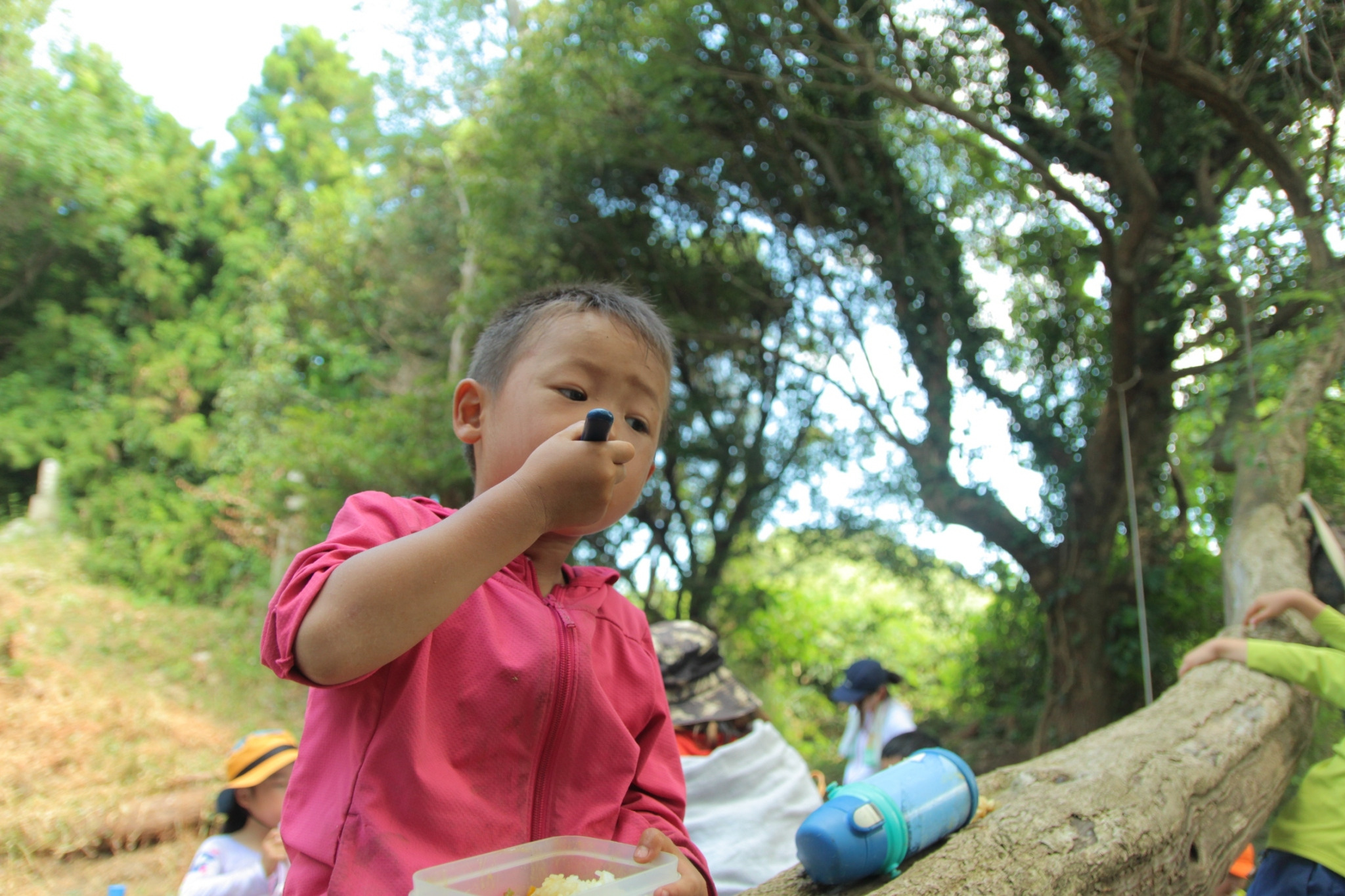 お弁当も各自でお腹がすいた子から食べ始め、お弁当より遊びに夢中な子は食べずに遊び続けます。